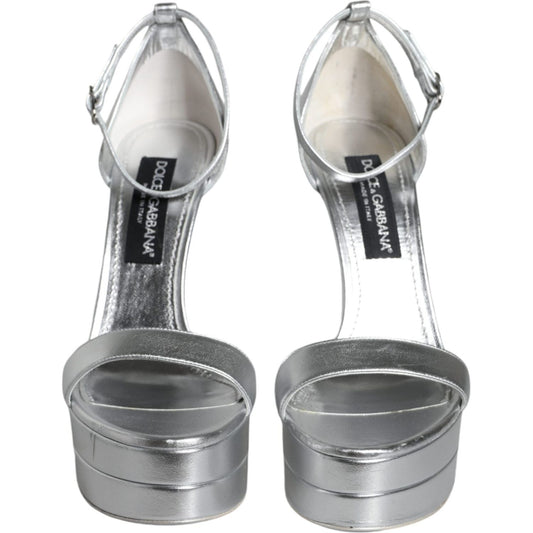 Dolce & Gabbana Silver Leather Platform Heels Sandals Shoes