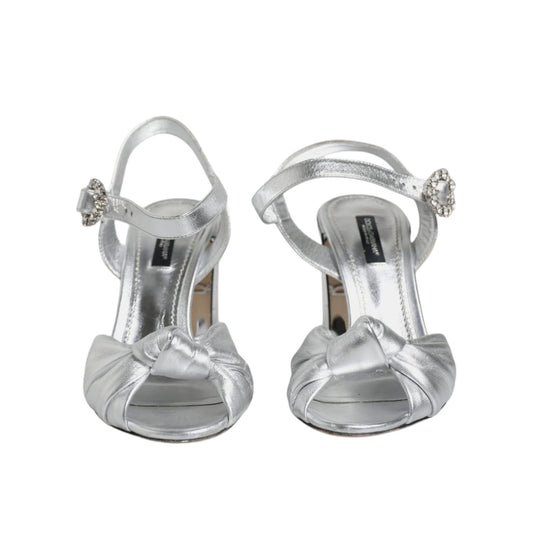 Dolce & Gabbana Silver Leather T-strap Heels Sandals Shoes