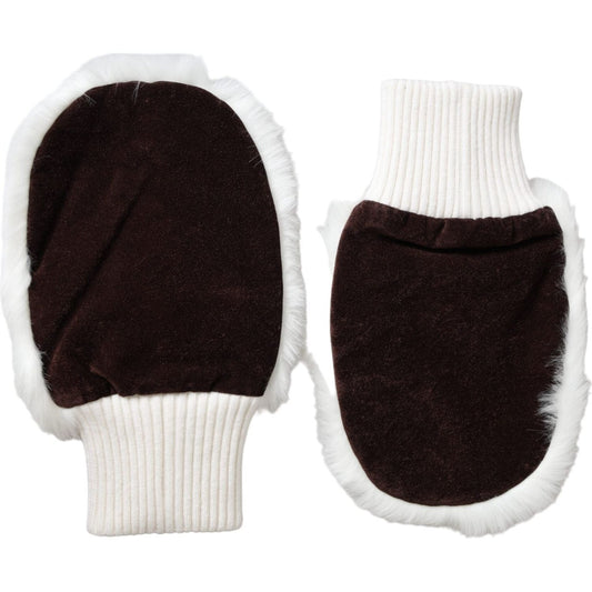 قفازات معصم من الفرو الأكريليكي المحبوك باللون الأبيض من دولتشي آند غابانا
