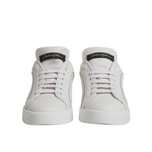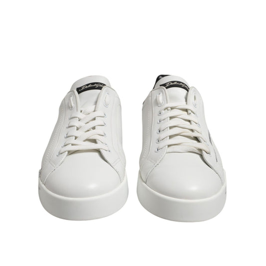 Dolce & Gabbana White Black Leather Portofino Sneakers Shoes