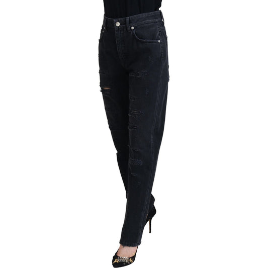 Dolce & Gabbana Black Cotton Tattered Mid Waist Denim Jeans
