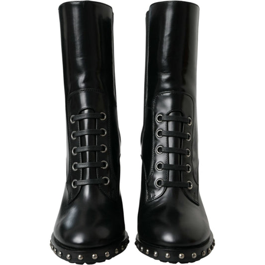 Dolce & Gabbana Black Leather Studded Combat Boots