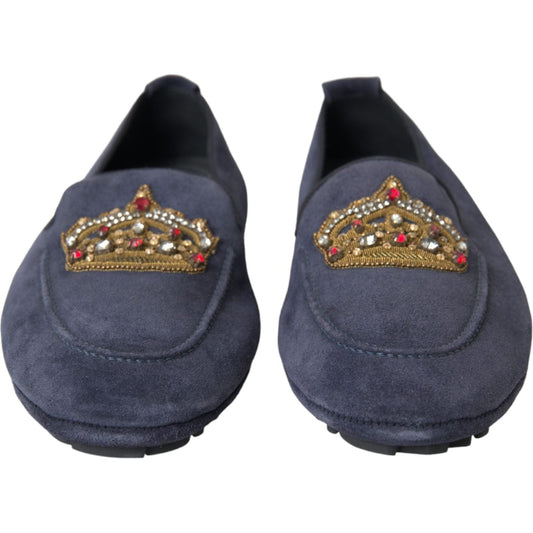 حذاء دولتشي آند غابانا من الجلد المدبوغ باللون الأزرق مع تاج من الكريستال