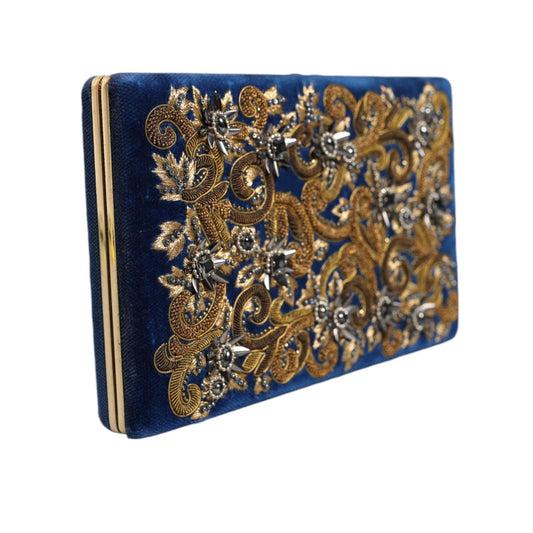 حقيبة كلاتش للحفلات المسائية من دولتشي آند غابانا باللون الأزرق المخملي بإطار ذهبي