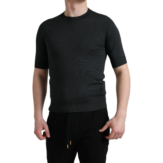 تي شيرت دولتشي آند غابانا الأنيق من الحرير بياقة دائرية باللون الرمادي الداكن