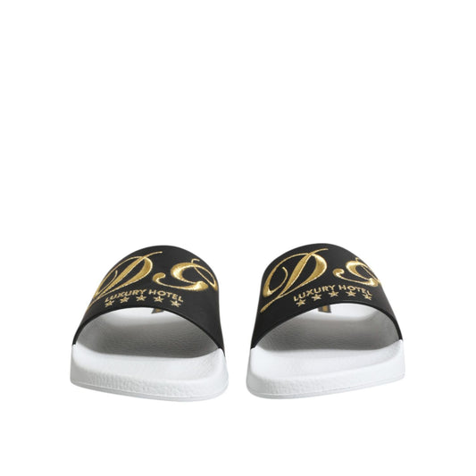 Dolce & Gabbana White Black Leather Sandals Beachwear Shoes