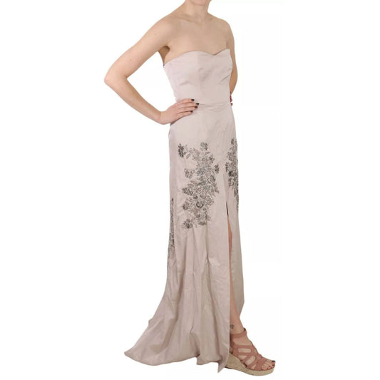 Dolce & Gabbana Beige Sequined Flower Flare Ball Gown Dress