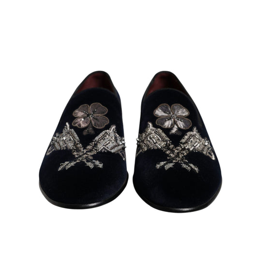 Dolce & Gabbana Black Velvet Floral Gun Loafers Dress Shoes