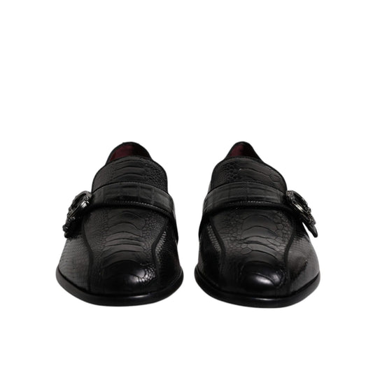 Dolce & Gabbana Black Exotic Leather DG Logo Loafers Formal Dress Shoes