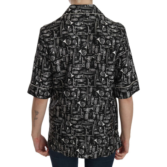 بلوزة من الحرير بطبعة آلة موسيقية من دولتشي آند غابانا