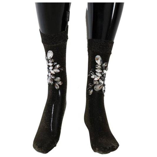 جوارب سوداء بطول منتصف الساق مزينة بالكريستال من دولتشي آند غابانا