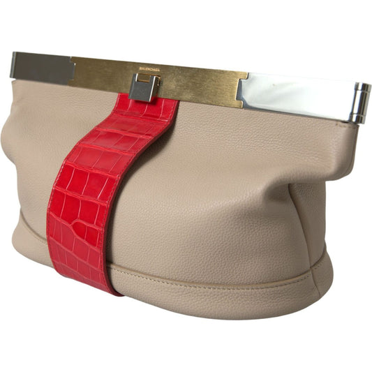 حقيبة كلاتش صغيرة أنيقة باللون البيج من Balenciaga لإطلالة مسائية أنيقة