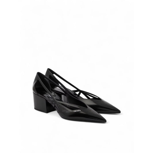 Prada Black Leather Cut-Out Pumps 55