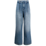 mid-rise wide-leg jeans from ARMARIUM featuring indigo blue, cotton, washed denim, mid-rise, belt loops, front button and zip fastening, two side slit pockets, rear welt pocket, wide leg and straight hem. Denim shorts Size and Fit - This piece fits true to size. We recommend you get your regular size. Model is 1,75m / 5ft 8in wearing size 40 (IT)