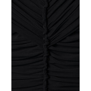 ruched off-shoulder dress from AZ FACTORY featuring black, stretch-design, off-shoulder, ruched detailing, ruffled detailing, long sleeves and thigh-length. V-neck short dress Size and Fit - This piece fits true to size. We recommend you get your regular size. Model is 1,75m / 5ft 8in wearing size 36 (FR)