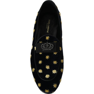 حذاء دولتشي آند غابانا الأنيق المصنوع من المخمل المطرز على شكل تاج