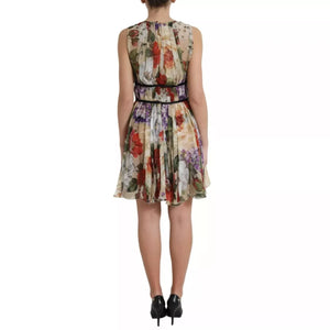 Dolce & Gabbana Beige Floral Sleeveless A-line Mini Dress