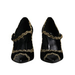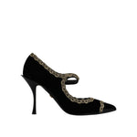 Dolce & Gabbana Black Velvet Gold Mary Janes Pumps Shoes