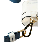 Dolce & Gabbana White Blue Calf Leather Logo Print Strap Airpods Case