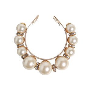 • Dolce & Gabbana Gold Pearl Crystal Embellished Tiara Hair Accessory Headband
