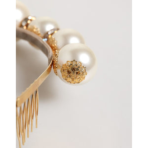Dolce & Gabbana Gold Pearl Crystal Embellished Tiara Hair Accessory Headband