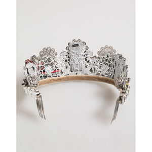 Dolce & Gabbana LED Crystal Embellished Silver Floral Filigree Crown Tiara
