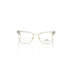 Elevate your eyewear with the suave sophistication of Frankie Morello’s Clubmaster Model Eyeglasses. These statement specs captivate with their gold-colored metallic allure and a sharp upper profile that exudes confidence. The transparent temples are subtly branded, ensuring your style speaks volumes without uttering a word. They’re not just glasses; they’re a clear signifier of your impeccable taste and penchant for luxury with a timeless Italian touch.