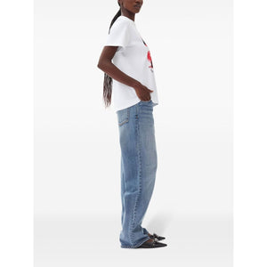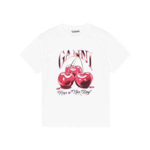 White/multicolour cotton logo print to the front graphic print to the front round neck short sleeves straight hem Cherry organic cotton t-shirt