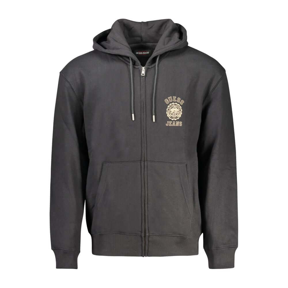 Elevate your casual wardrobe with the Guess Jeans signature edge. This sleek, black hoodie exudes a timeless cool, boasting a bold print and iconic Guess Jeans logo for the trendsetter in you. Perfect for urban escapades or laid-back weekends, it’s designed with comfort and style in mind, featuring two central pockets and a convenient zip closure. Immerse yourself in the blend of cotton and polyester for durability and ease.