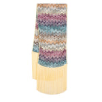 fringed edge knitted scarf from MISSONI featuring multicolour, knitted construction, patterned intarsia knit, signature zigzag woven design, fringed edge and rectangle shape. Striped scarf Size and Fit - LENGTH: 35.0 Centimetres. WIDTH: 180.0 Centimetres.