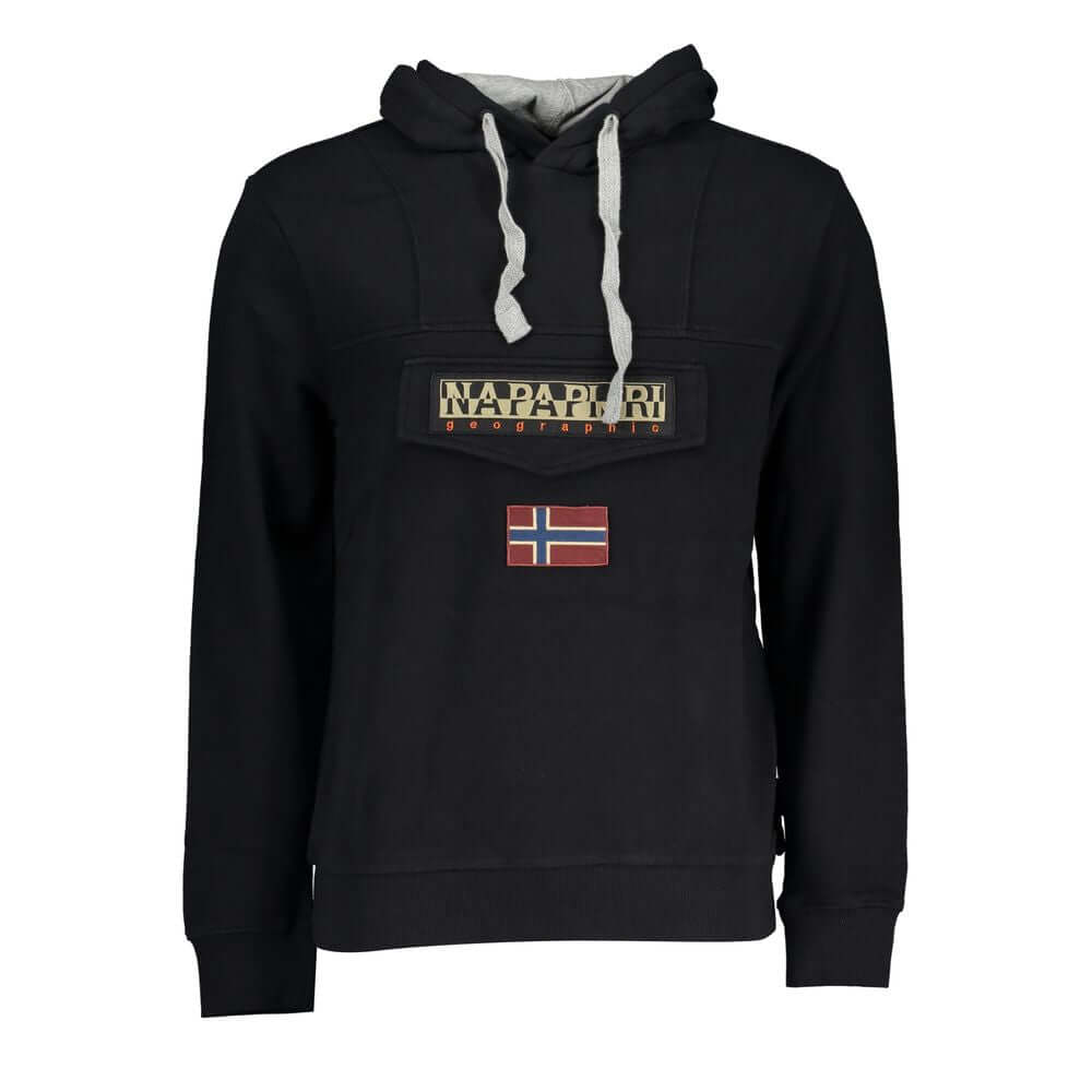 Unleash the epitome of cool with Napapijri’s hooded sweatshirt—a must-have for the style-conscious. This long-sleeved black masterpiece features brushed cotton that offers unmatched comfort. Its central pocket brings utility, while the contrasting details and bold logo application shout “statement piece”. Perfect for those who dare to stand out.