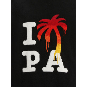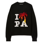 I Love PA knitted jumper from PALM ANGELS featuring black/multicolour, intarsia-knit logo, knitted construction, crew neck, long sleeves and ribbed-knit edge. I Love PA sweater Size and Fit - This piece fits true to size. We recommend you get your regular size. Model is 1,84m / 6ft 1in wearing size M