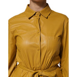 PINKO Polyester Belted Shirt Midi Long Sleeve Yellow Mustard