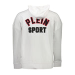 Elevate your athleisure game with the Plein Sport hooded sweatshirt, a harmonious blend of function and fashion. Crafted for the bold and the fearless, it boasts stark contrasting details, assertively complementing the crisp white fabric. The frontal zip glides smoothly, revealing a street-ready silhouette, while dual central pockets add a dash of utility. Vivid prints and the iconic Plein Sport logo application underscore the brand’s heritage of luxury and attitude. Make no mistake, this is not just a sweatshirt; it’s a statement.