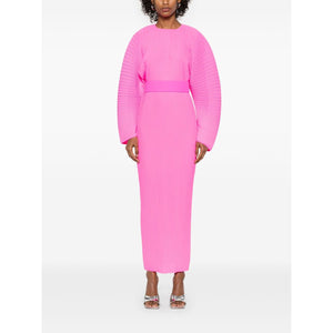 hot pink concealed rear zip fastening detachable and adjustable waist belt pencil silhouette long raglan sleeves Mirabelle maxi dress Size and Fit - This piece fits true to size. We recommend you get your regular size. Model is 1,75m / 5ft 8in wearing size 8 (UK)