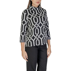 The Street One EOS women’s sweater with scarf collar and jacquard pattern is the perfect choice for those seeking both style and comfort in knitwear. Made from a blend of 63% polyester, 34% viscose, and 3% elastane/lycra, it offers a comfortable fit and pleasant stretch that moves with your body. The geometric jacquard design adds a modern and sophisticated touch, while the cozy scarf collar provides both style and practicality. Long sleeves with turned-up cuffs and a slightly fitted cut flatter the silhouette, making this sweater ideal for both casual and more refined outfits. Perfect for the autumn-winter season, it is a versatile piece to wear at the office, during leisure time, or for special occasions.