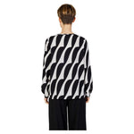 The Street One Printed roundneck blouse w tea 344437 is an elegant and versatile long-sleeved women’s blouse, perfect for any occasion. Made from 100% viscose, it offers a lightweight and comfortable fit, ideal for mid-season or year-round wear. The modern design features a wavy graphic print that adds an original and sophisticated touch to your outfit. The round neckline with a small cut-out detail enhances femininity and style, while the slightly wide long sleeves give a refined, contemporary look. This blouse pairs easily with both tailored trousers and jeans, allowing you to create casual-chic or more formal outfits as needed.