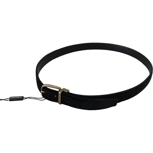 Dolce & Gabbana Black Velvet Leather Antique Metal Buckle