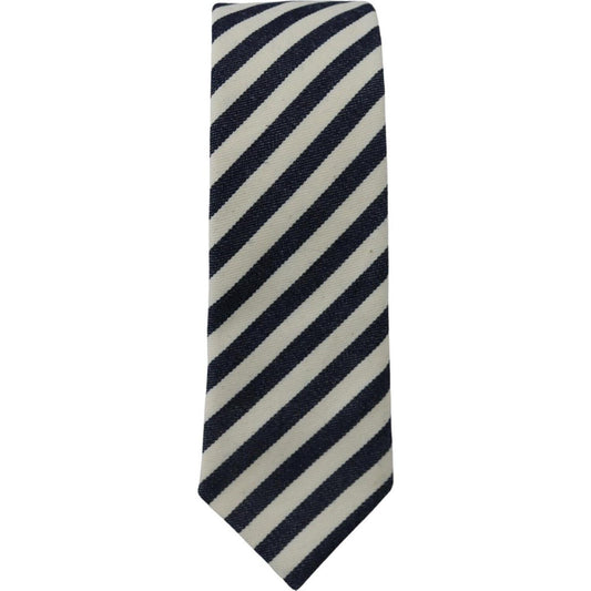 Denny Rose White Blue Striped Classic Adjustable Men Silk Tie