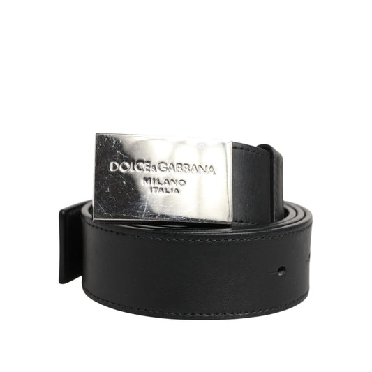 Dolce & Gabbana Black Classic Leather Silver Tone Buckle Belt