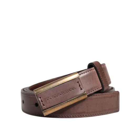 Dolce & Gabbana Brown Calf Leather Classic Metal Buckle Belt
