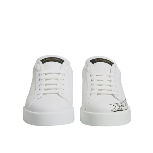 Dolce & Gabbana White Leather Low Top Lace Up Sneakers Shoes