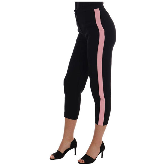 Dolce & Gabbana Black Stretch Pink Stripes Capri Pants