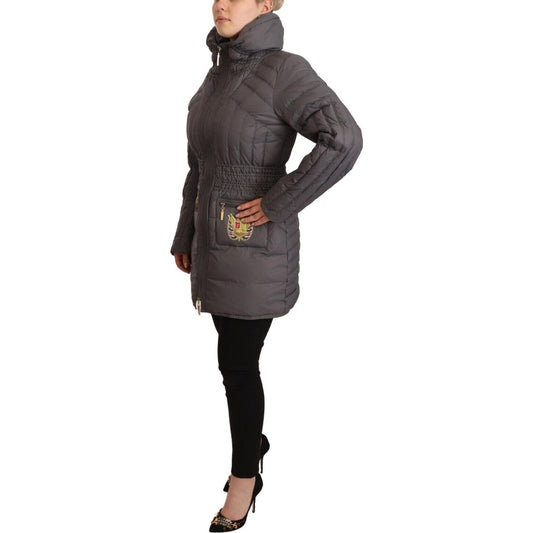Roccobarocco Gray Quilted Long Sleeves Logo Patch Full Zip Jacket