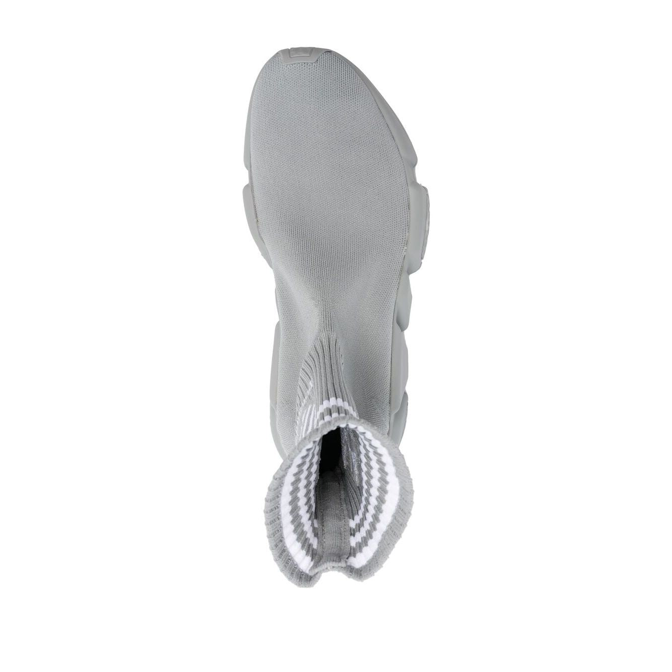 x Adidas Speed sock-style sneakers from BALENCIAGA featuring grey, white, knitted construction, ribbed knit, embroidered logo to the side, stripe detailing, sock-style ankle, almond toe and chunky rubber sole. Conscious: We've partnered with Good On You – an ethical agency that rates how sustainably brands perform. This item comes from a brand that performs well in relation to their impact on the planet.. Speed LT sneakers Size and Fit - Heel 1,6 in / 4 cm; Platform 0,8 in / 2 cm