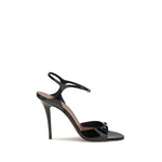 Amina Muaddi’s Adut Sandals embody elegance and femininity in a striking design. Made of patent leather, they stand out for their sleek stiletto heel and buckle closures embellished with rhinestones, featured on both the ankle and upper. A sophisticated model, perfect for adding a sparkling touch to evening looks or special occasions.