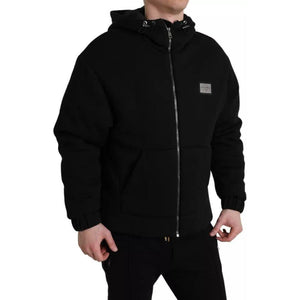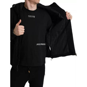 Dolce & Gabbana Black Cotton Hooded Logo Bomber Men Jacket