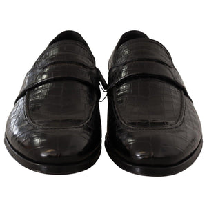 Dolce & Gabbana Black Crocodile Leather Slip On Moccasin Shoes