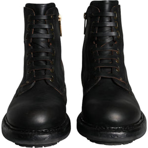 Dolce & Gabbana Black Lace Up Mid Calf Boots Men Shoes MV5870-40
