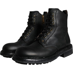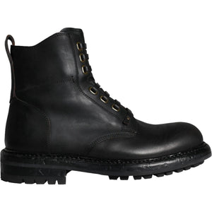 Dolce & Gabbana Black Lace Up Mid Calf Boots Men Shoes